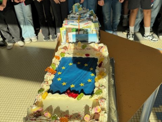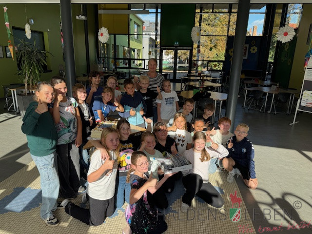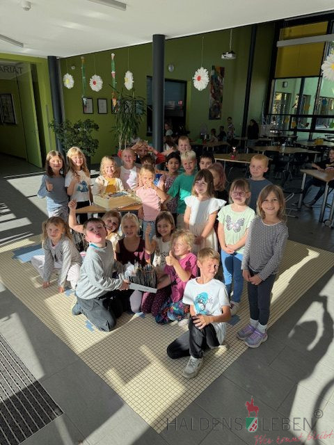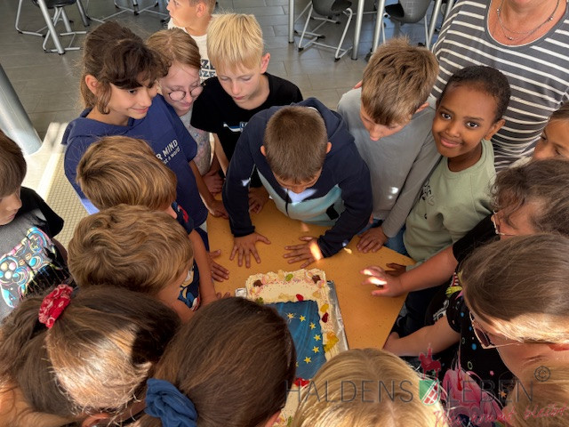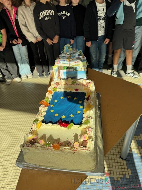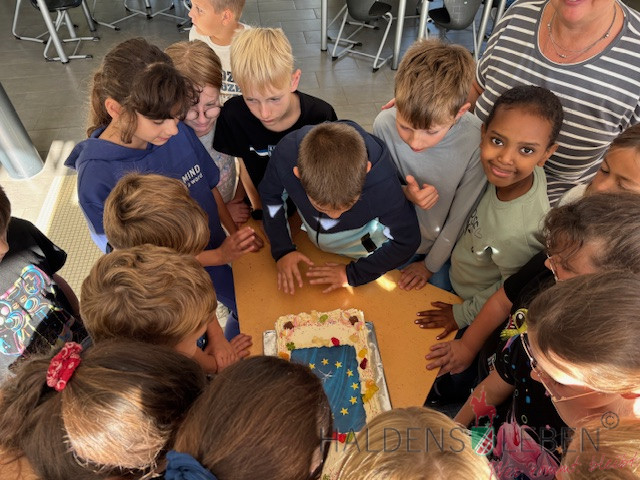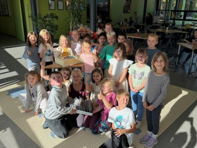 Unsere Klasse 4b hat sich in diesem Sommer ganz besonders ins Zeug gelegt und 215 Urlaubskarten geschrieben! Das ist eine tolle Leistung, die mit einer leckeren Torte von unserem Haldensleber Bäcker Mike Lippmann belohnt wurde. Mmmh, lecker – hierfür hat sich der Aufwand auf jeden Fall gelohnt. Das war toll!