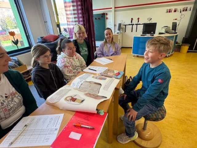 Trotz großer Aufregung zeigten unsere Teilnehmer des diesjährigen Vorlesewettbewerbs tolle Leseleistungen. Nach einer musikalischen Eröffnung und kurzen Vorstellung der ausgewählten Kinder jeder Klassenstufe startete der Wettbewerb. Die Jury – bestehend aus Eltern und ehemaligen Lehrkräften – hatte die schwere Aufgabe, aus den vielen tollen Beiträgen die Gewinner festzulegen. Ein herzliches Dankeschön an dieser Stelle an alle, die sich die Zeit genommen haben, uns hierbei zu unterstützen!