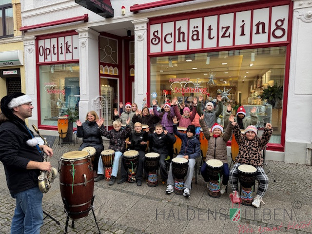 Trommelauftritt am verkaufsoffenen Sonntag 8. Dezember 2025 Grundschule Gebrüder Alstein Einen professionellen Percussion-Auftritt zeigte unsere Klasse 4b mit ihrem Trommellehrer Herrn Ziep am vergangenen Sonntag in der Haldensleber Einkaufsstraße. Das habt ihr toll gemacht!