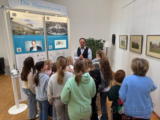Interessiert erkundeten unsere Viertklässler die Wanderausstellung vom Bundestag. Toll, dass wir diese Gelegenheit nutzen konnten!